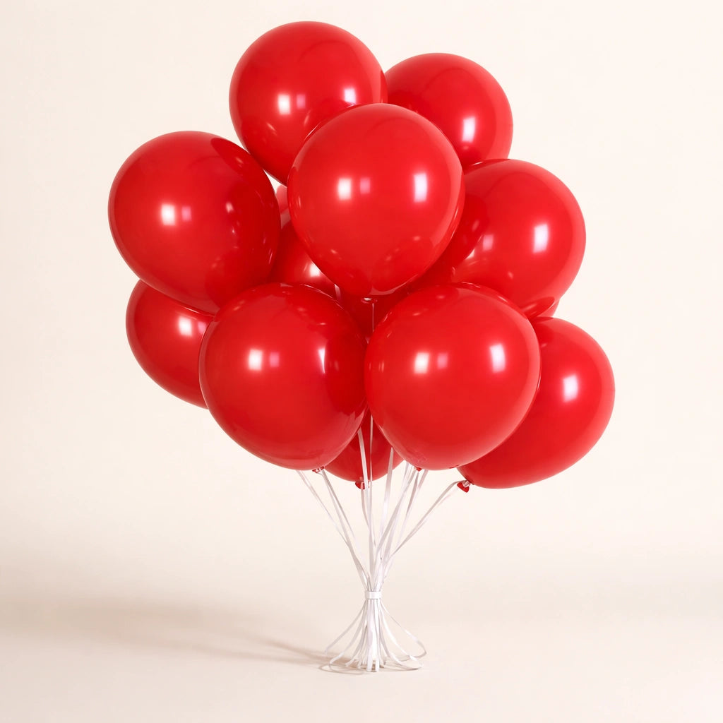 A vibrant bunch of premium red latex balloons, beautifully arranged to create a bold and festive look — perfect for birthdays, anniversaries, romantic surprises, and celebration décor. Simple, elegant, and eye-catching.